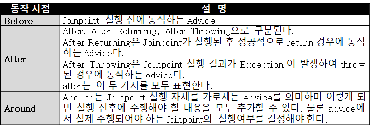 동작 시점은 AOP 기술마다 조금씩 다름