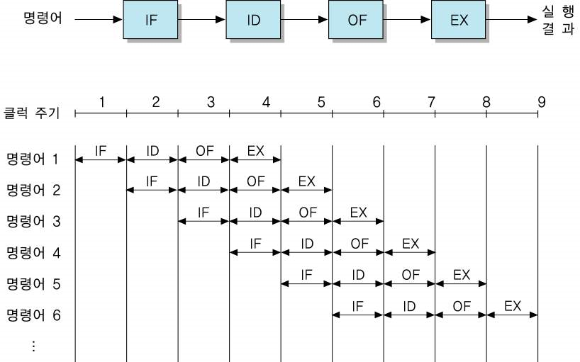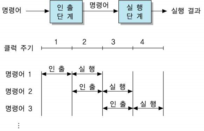 CPU의 프로그램 처리 속도를 높이기 위하여 CPU 내부 하드웨어를 여러 단계로 나누어 동시에 처리하는 기술