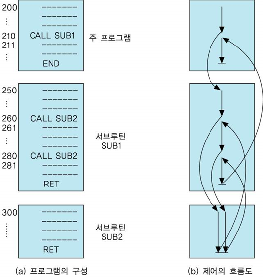 서브루틴들이 포함된 프로그램의 실행 과정