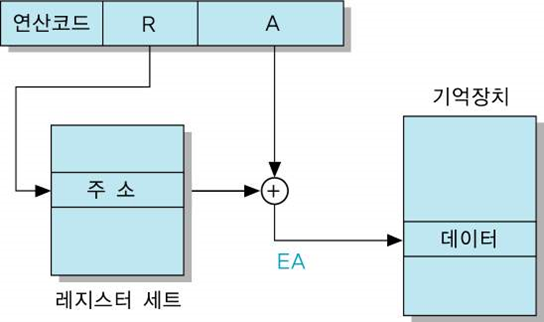 베이스 레지스터의 내용과 변위 A를 더하여 유효 주소를 결정