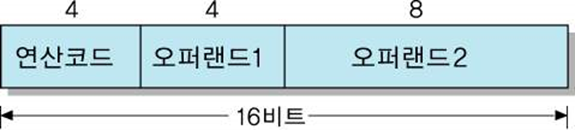연산 코드 필드 = 4 비트 24 = 16 가지의 연산들 정의 가능
