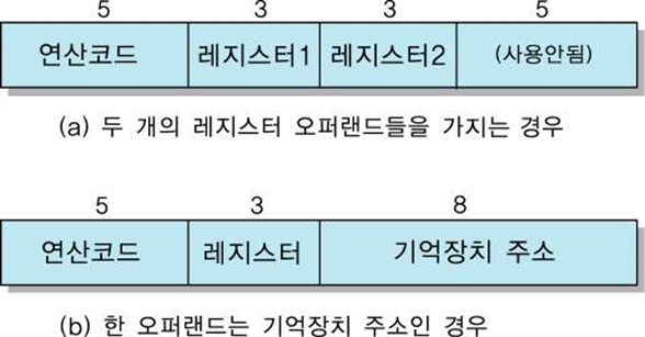 오퍼랜드1은 레지스터 번호를 지정하고, 오퍼랜드2는 기억장치 주소를 지정하는 경우