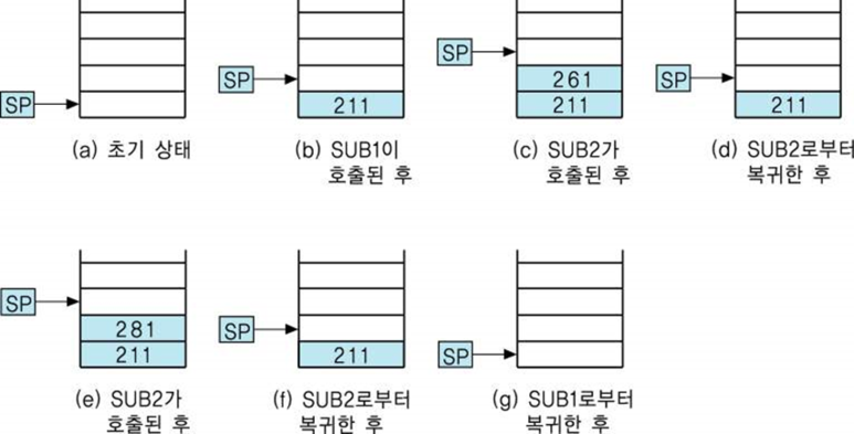 서브루틴 수행 과정에서 스택의 변화